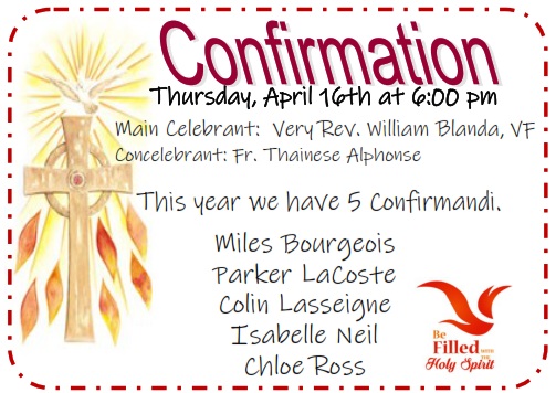 ✞ At 10 am Bishop Deshotel celebrates the Chrism Mass with all priests of the diocese at the Cathedral of St. John.