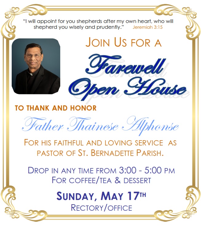 I am glad that God has placed me here to walk with you all in your relationship with Him. If there is one thing that I wish to communicate in this writing, it is this: I would like to be a bridge between you and Jesus. I will do my best to get to know as many of you as possible while being here, and I will try to deliver my best in regards to preaching, teaching and living the faith. Please feel free to reach out to me whenever you would like. Be assured that I am here for you, Father Poirrier is your priest.